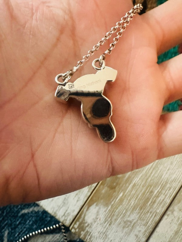 Such gorgeous craftsmanship! Sterling Silver, Coral and Turquoise Necklace. Sterling chain measures 14 inches long with a 2 inch extender. Pendant measures 1 1/8 inches long and 7/8 of an inch wide.