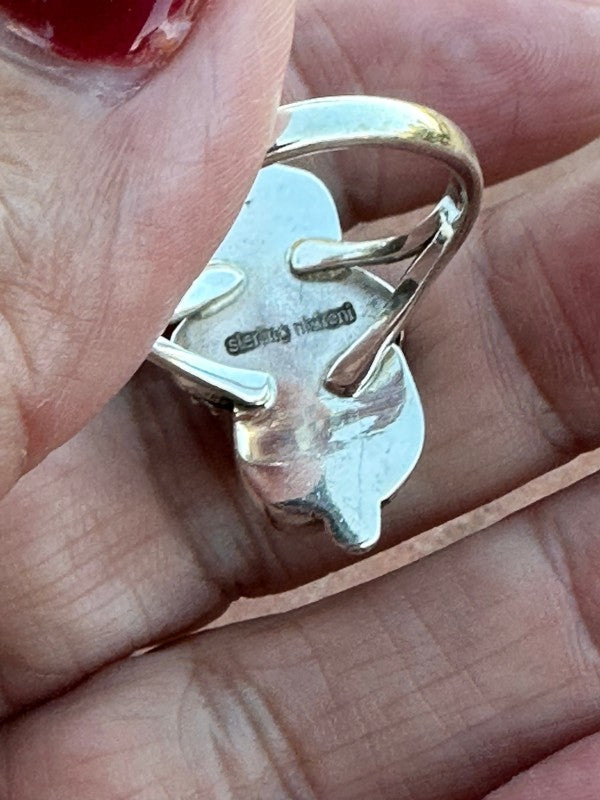 Handmade Natural Kingman Turquoise & Sterling Silver  rings. Due to the nature of the stones each will vary! Stamped sterling & signed Nizhoni. Size is 1 1/4 long and 1/2 inch wide.