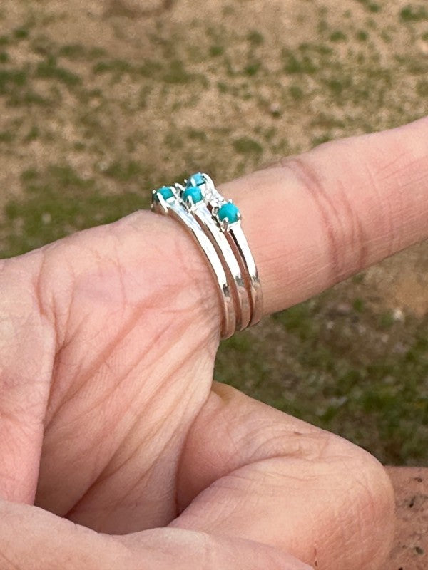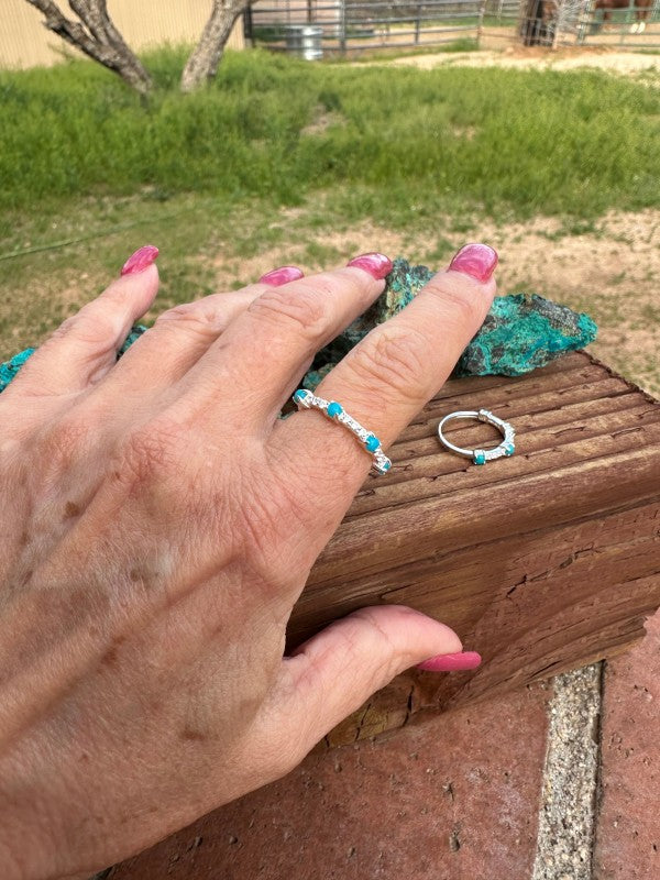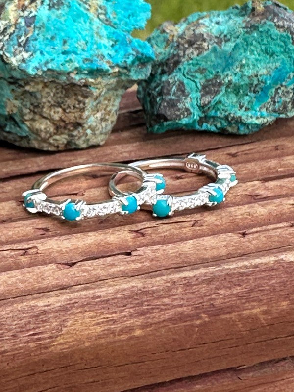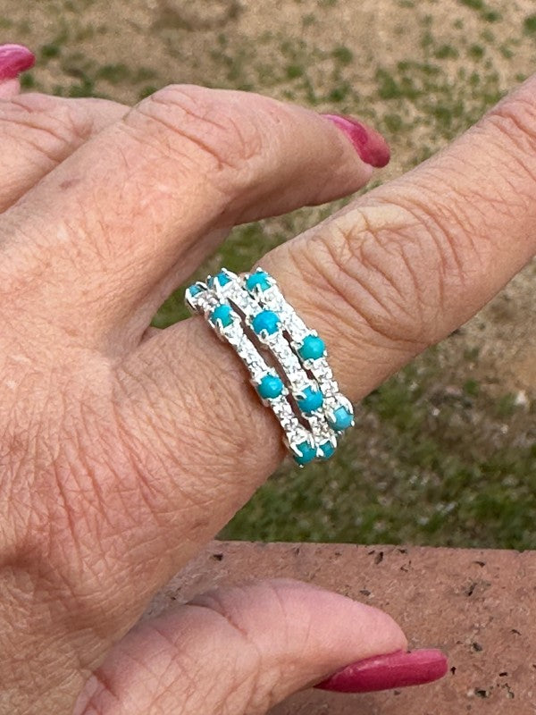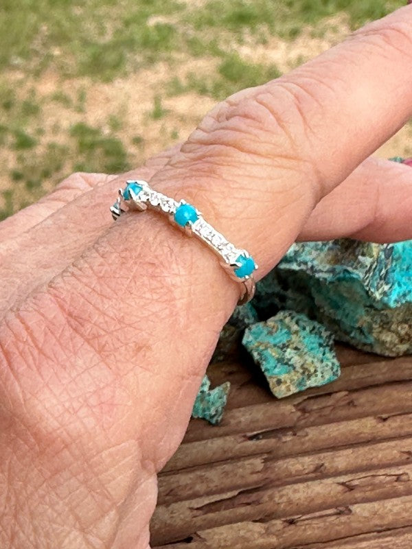 Gorgeous Handmade Turquoise, Cz and Sterling Silver Eternity Band. Beautiful craftsmanship! This ring is Beautiful, can be worn by itself or with your beautiful wedding ring. Also looks great as a stacking ring.