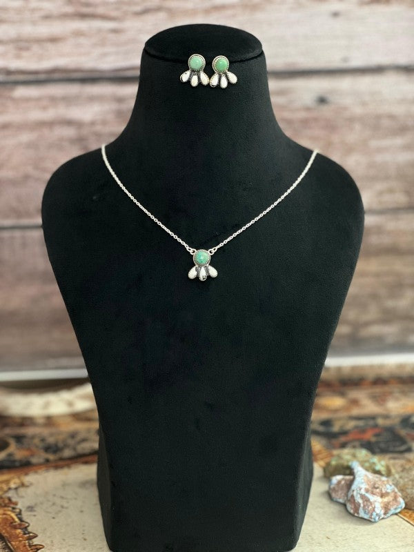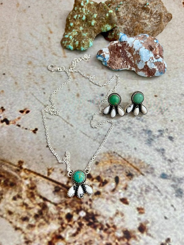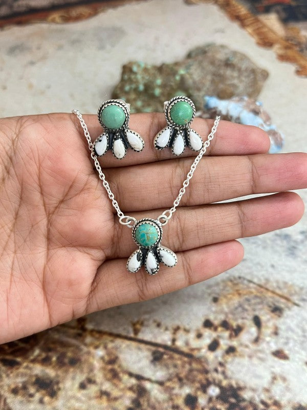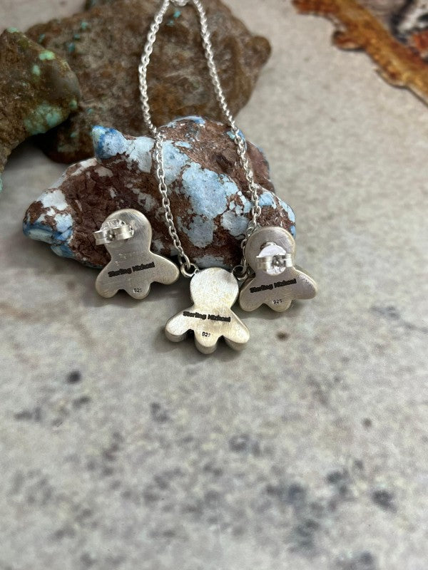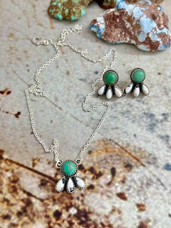 Beautiful Handmade Sterling Silver White Buffalo with Kingman Turquoise   Necklace and Earrings Set.