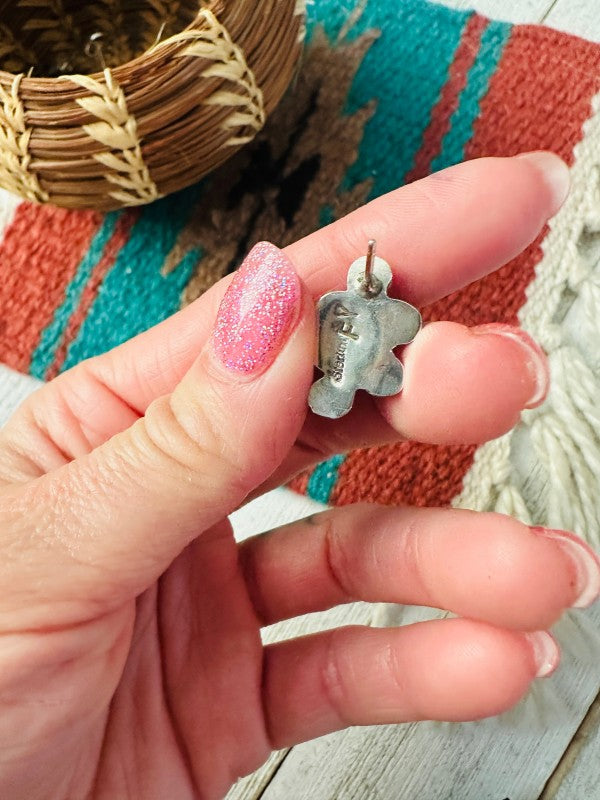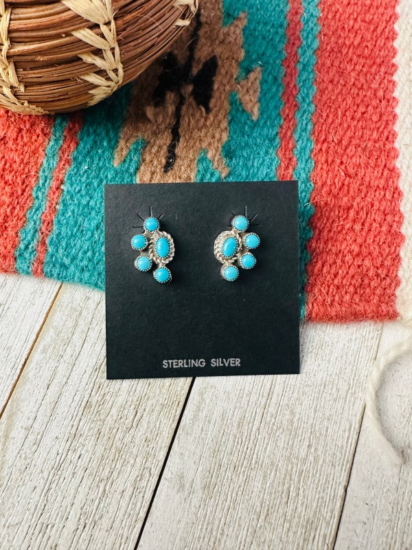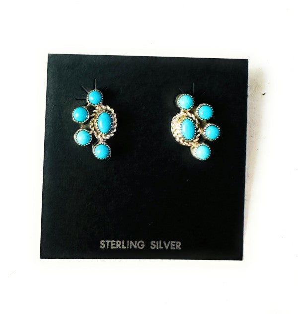 These are a beautiful pair of Navajo Sterling Silver and Turquoise cluster stud earrings. These measure 3/4 of an inch long and 1/2 of an inch wide. Amazing craftsmanship! Signed by the artist and stamped Sterling.