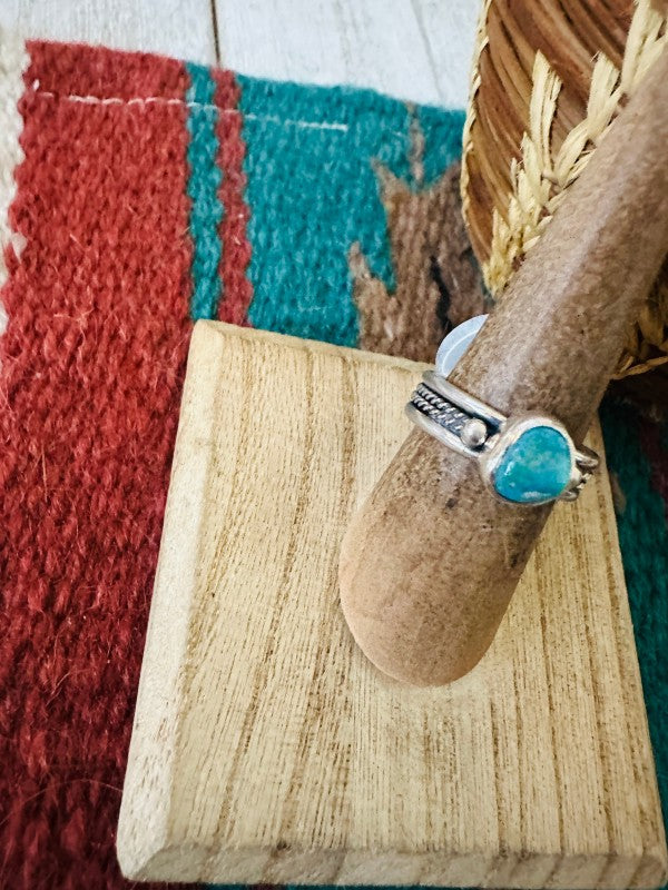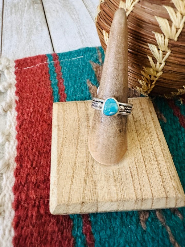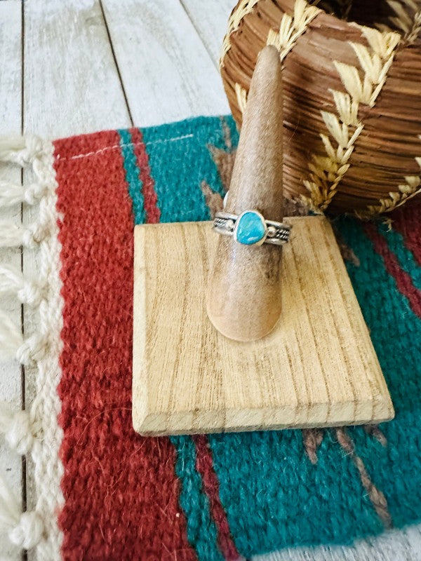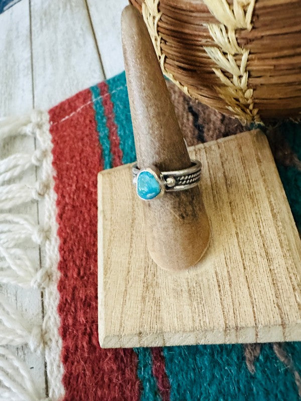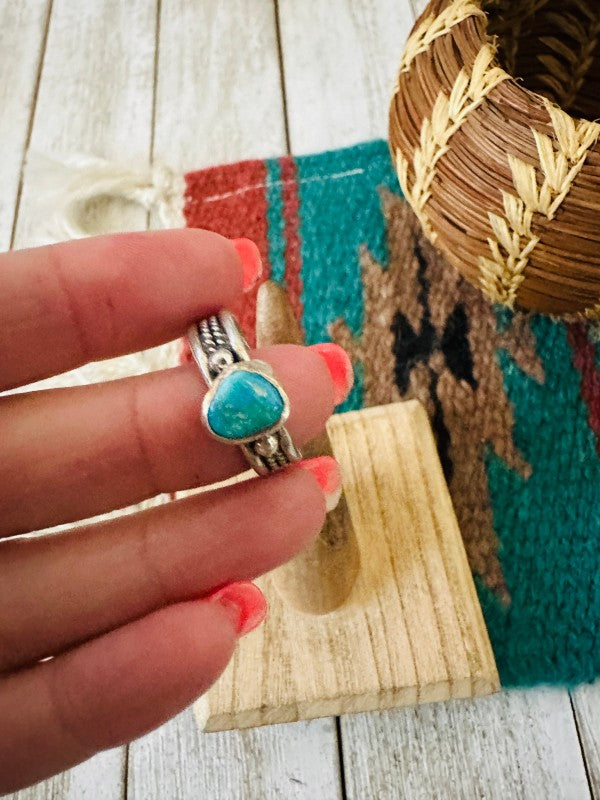 Beautiful Navajo Turquoise and Sterling Silver Ring. Size 6.5. Such pretty craftsmanship on this ring! Ring face measures 3/8 of an inch wide.