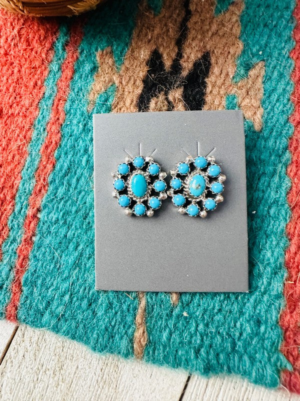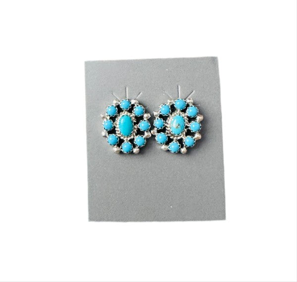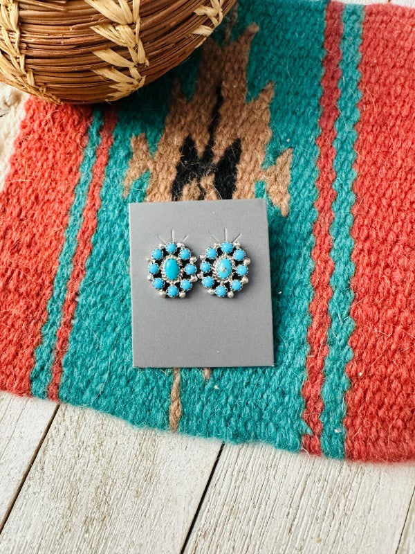Navajo Turquoise & Sterling Silver Cluster Stud Ea