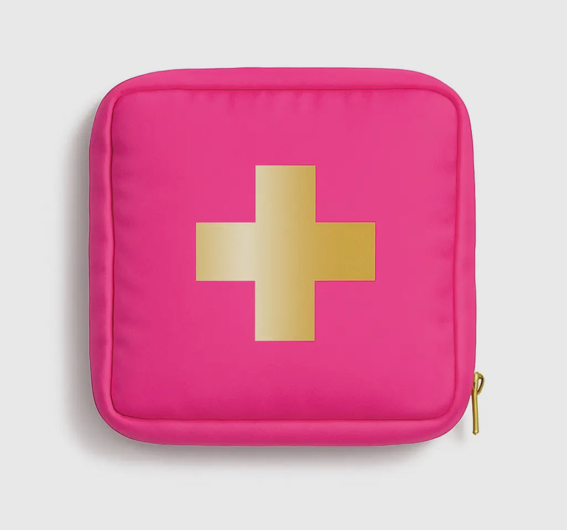 Perfect for the car, diaper bag, backpack ... this hot pink, soft case kit contains 90 first-aid essentials. This super-cute, super-lightweight zipper pouch with a branded charm includes scissors, antiseptic wipes, bandages, alcohol pads, tape roll, safety gloves, gauze pads, and non-adherent dressings.