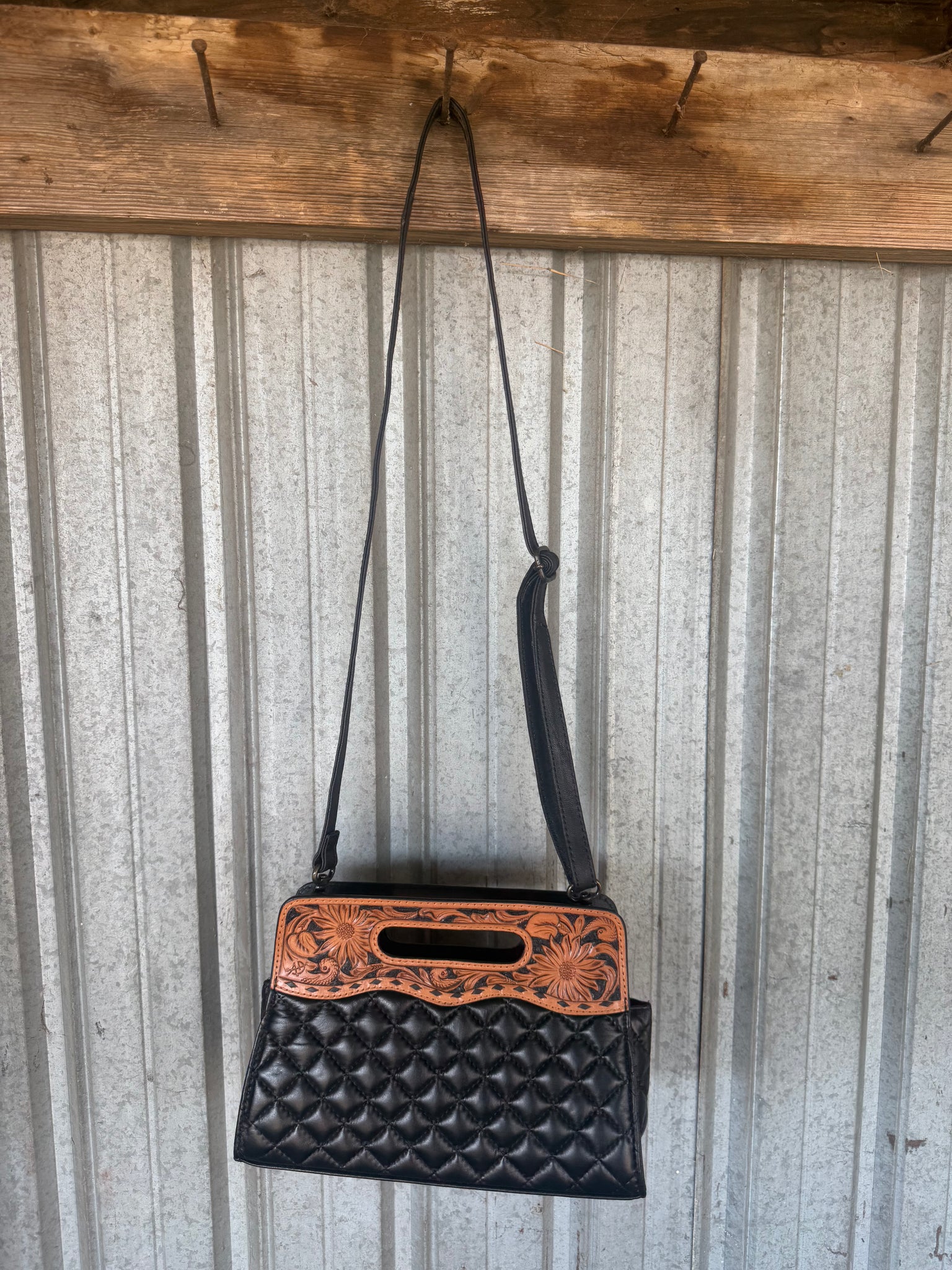 Hand-tooled floral leather top with sunflowers and scrollwork