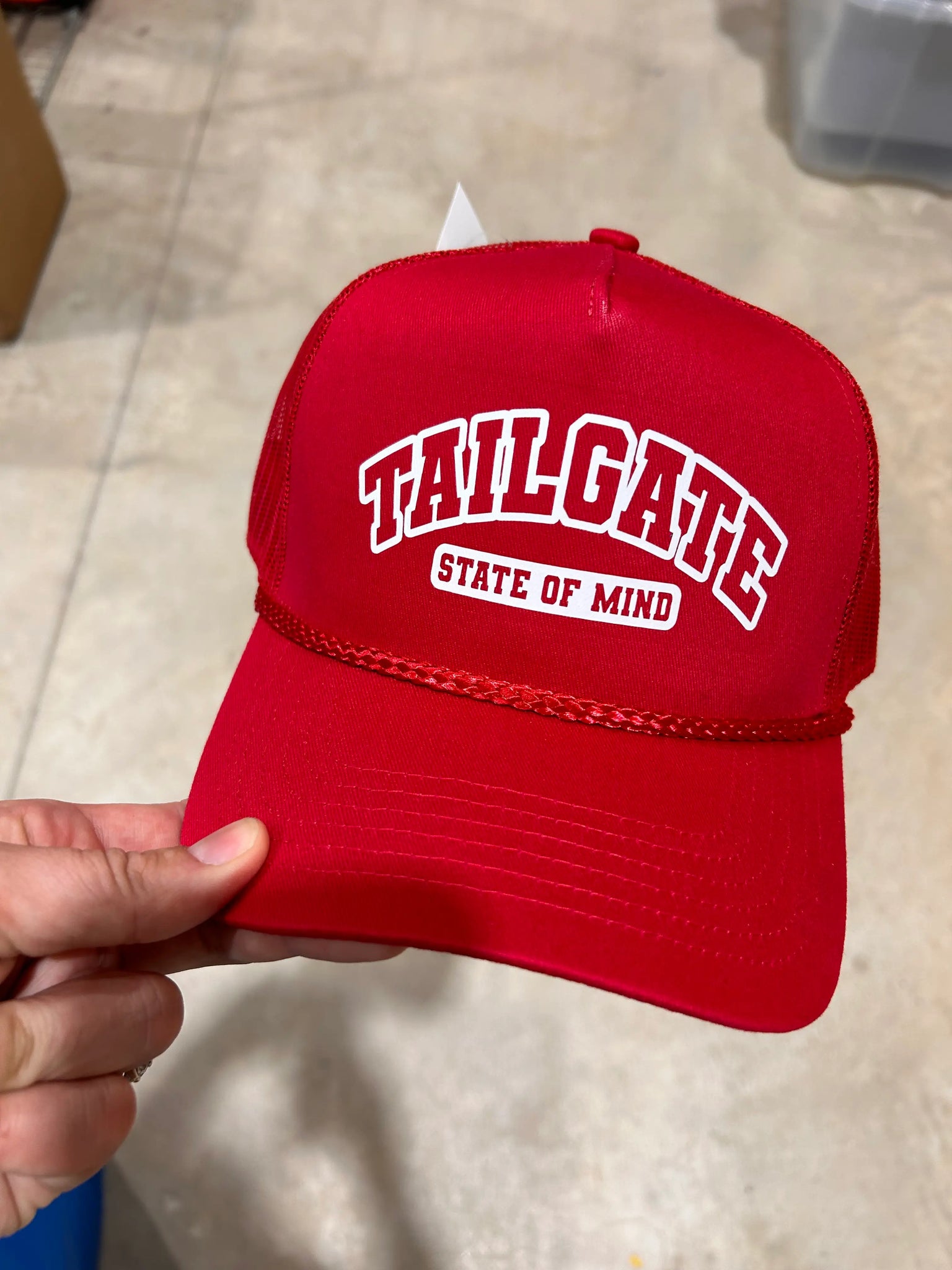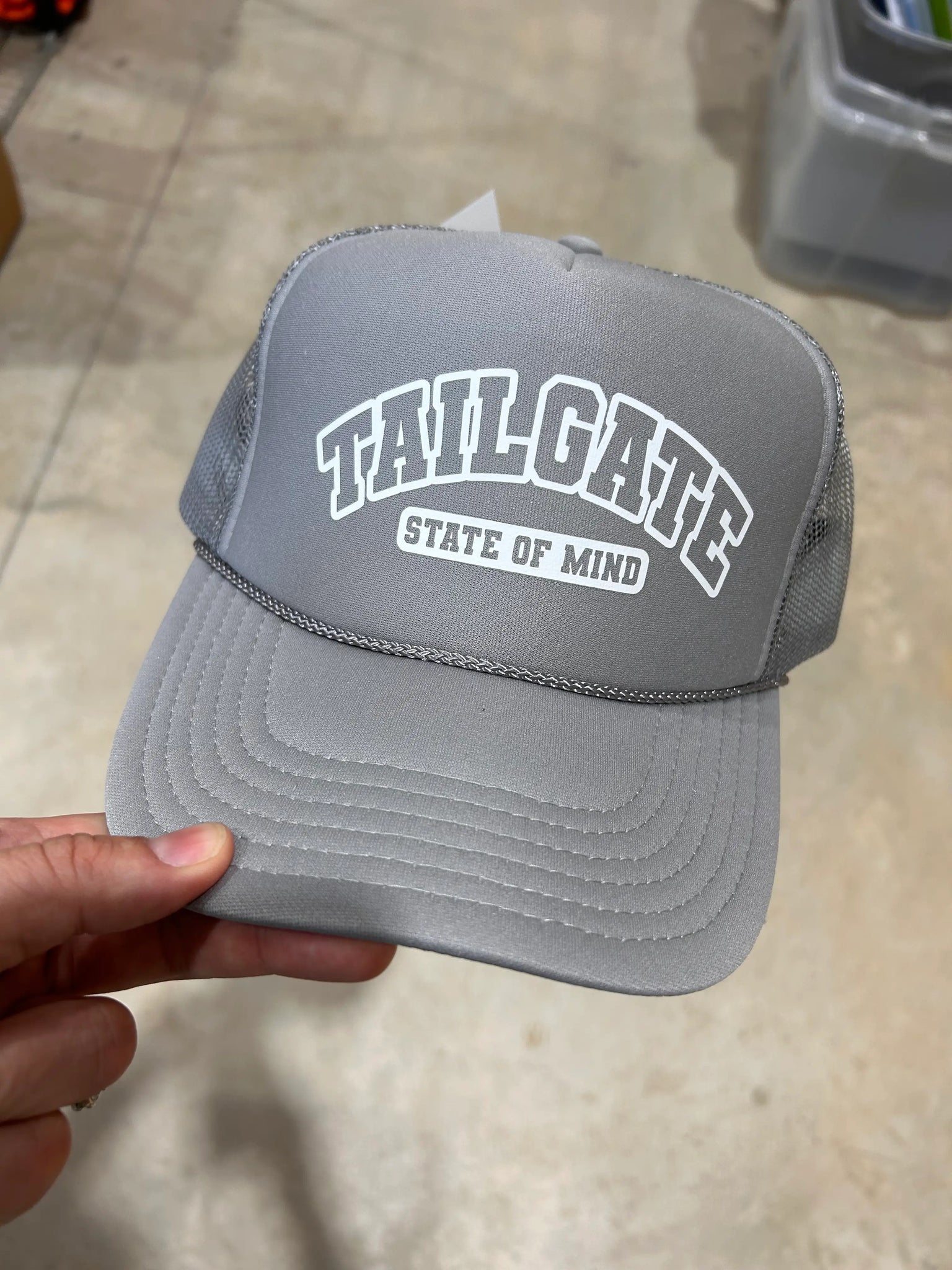 Tailgate State of Mind design screen printed on your favorite color trucker hat. Talk about the best way to show your team spirit! All trucker hats are foam front with an adjustable snapback enclosure.